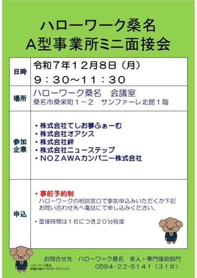 (求人係まで・ミニ面接会の件でとお伝えください)