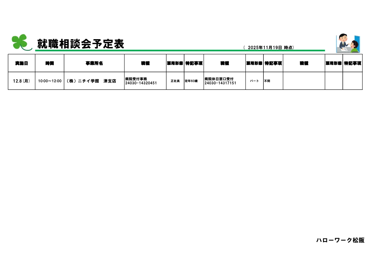 就職相談会予定表(11月19日現在)