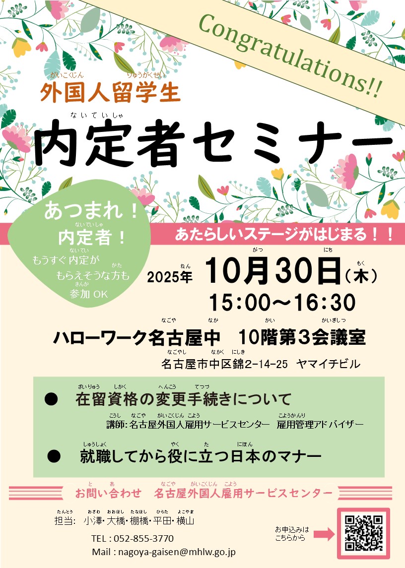 2026年3月に卒業予定の留学生の方で、日本の企業への採用内定が得られた方(内定者)、内定を得られる見込みがある方向けのセミナーです。