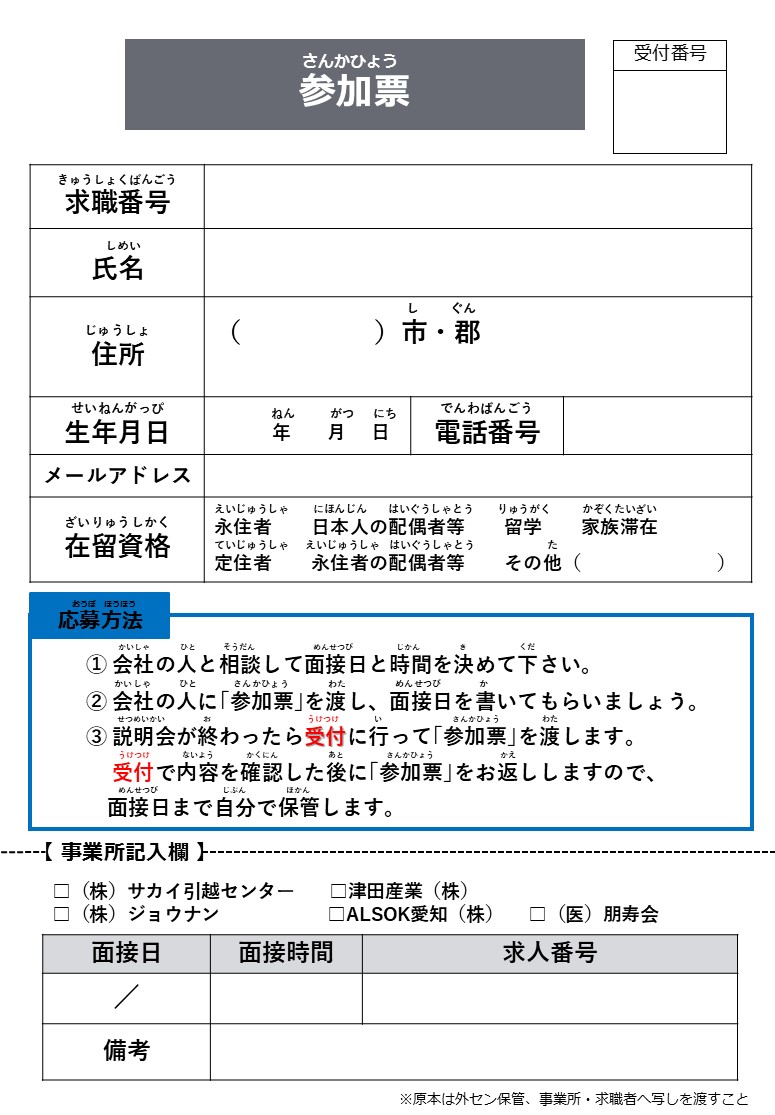 面接会(めんせつかい)に参加(さんか)したい方(かた)は、