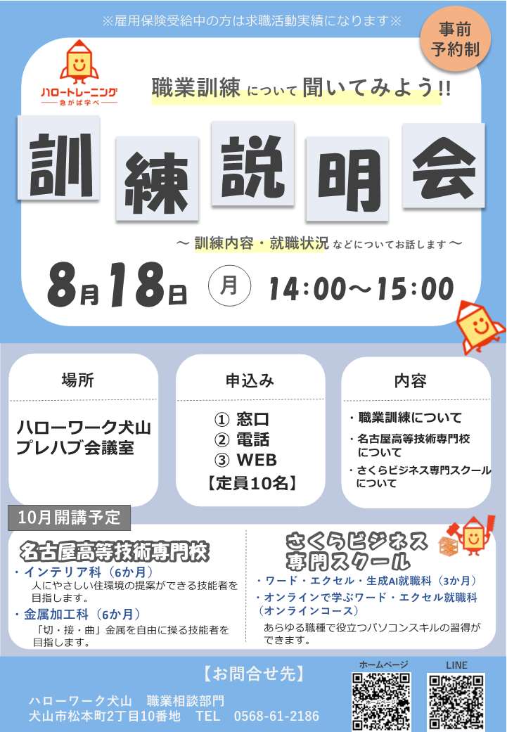 「職業訓練について聞いてみよう!!訓練説明会」の開催について