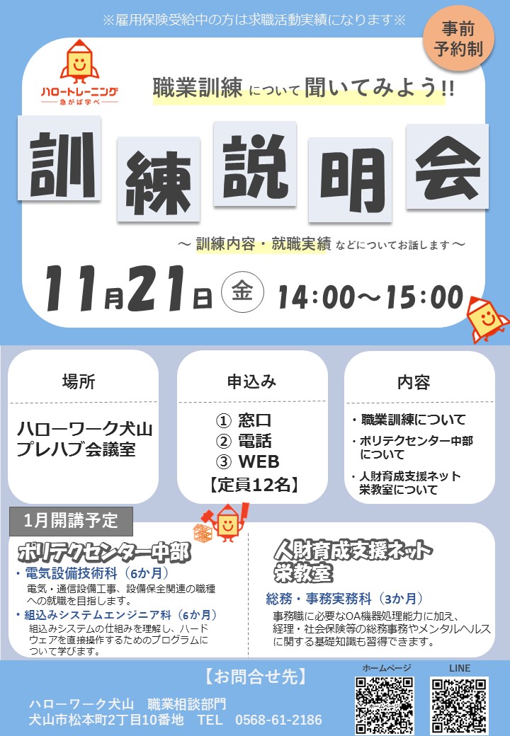 - 「職業訓練について聞いてみよう!!訓練説明会」の開催について