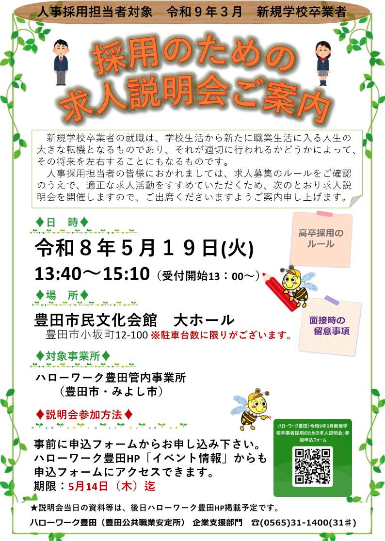 令和9年3月新規学校卒業者採用のための求人説明会の開催について