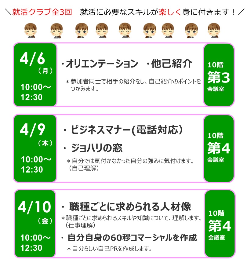 就活クラブの参加には、事前相談・申込が必要です。