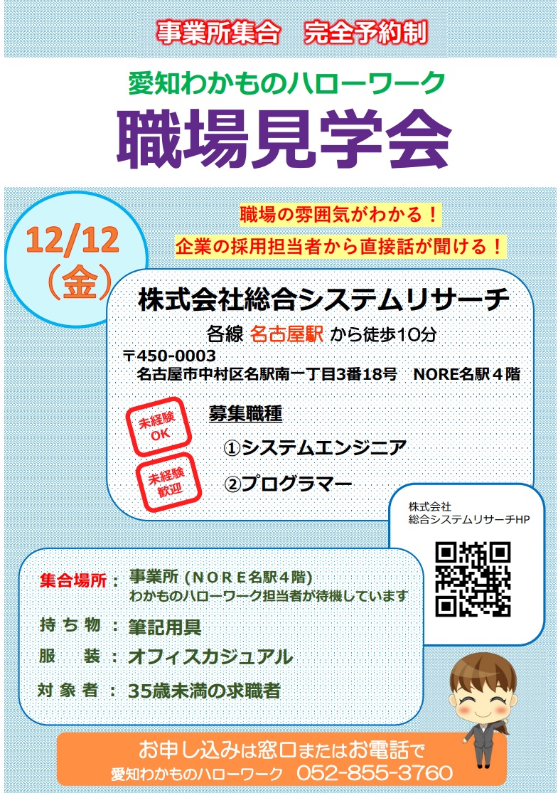 今年度は12/2(火)に開催します! 会場:ハローワーク名古屋中10階会議室