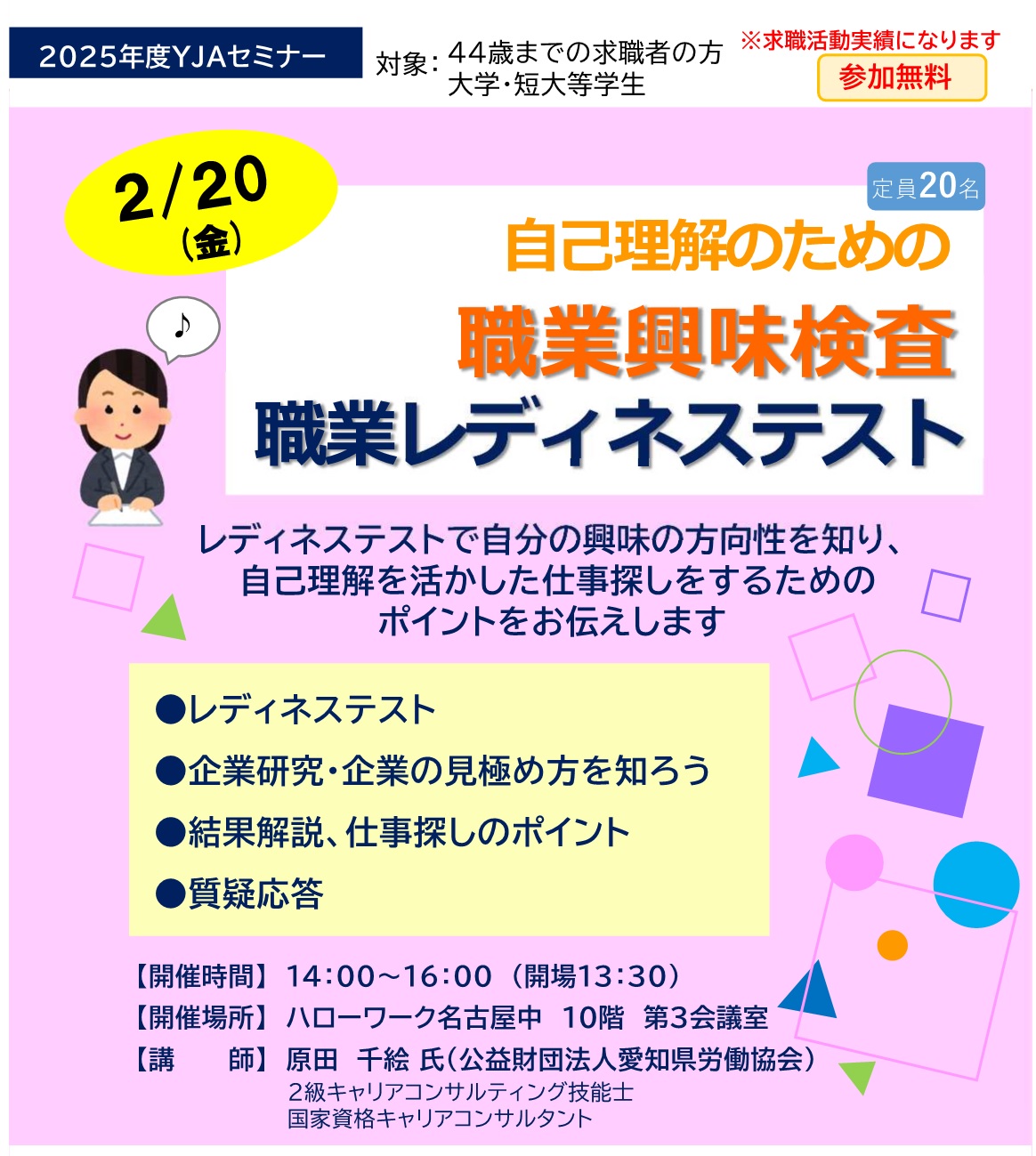 お申込み・お問い合わせは、あいち若者職業支援センター☎052-231-6350 まで!
