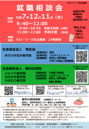 ハローワーク名古屋東の『窓口』『電話』『Web』で申し込みできます。就職相談会 参加事業所