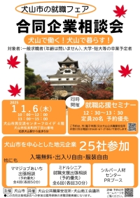 令和7年11月6日(木)に、犬山市主催で「犬山市合同企業相談会」を開催します。