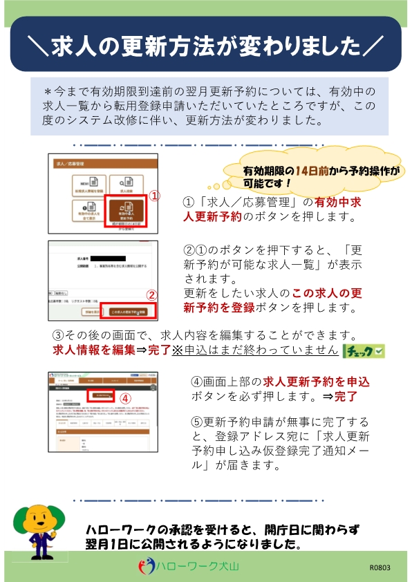 求人の更新方法が変わりました