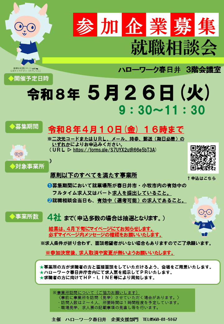 ハローワーク春日井主催就職相談会 参加事業所募集のお知らせ