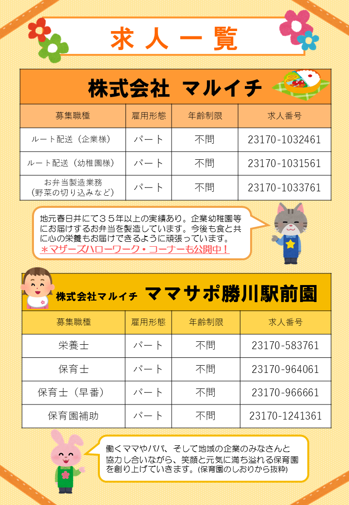 ※画像をクリックしたらPDFファイルが開きます ※PDFの求人番号をクリックすると求人詳細を確認いただけます