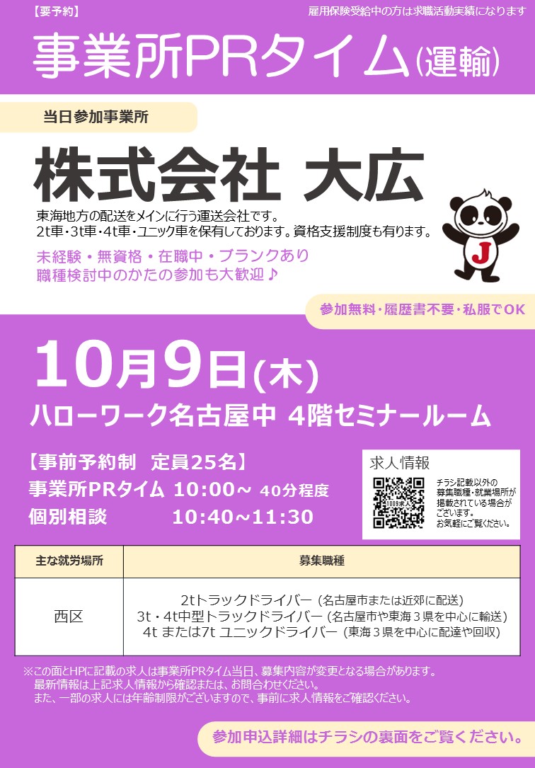 10月9日(木) 事業所PRタイム(運輸)