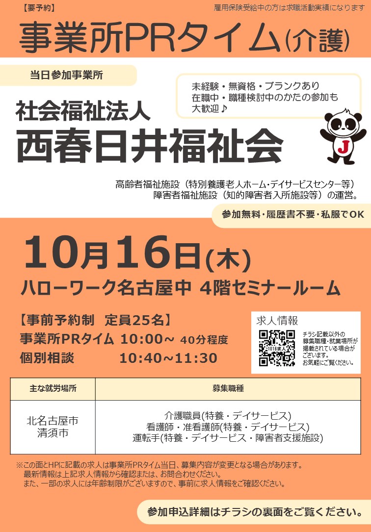 10月16日(木) 事業所PRタイム(介護)