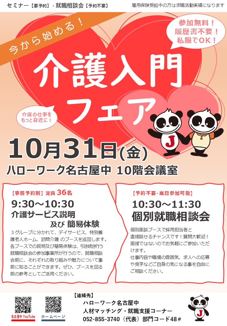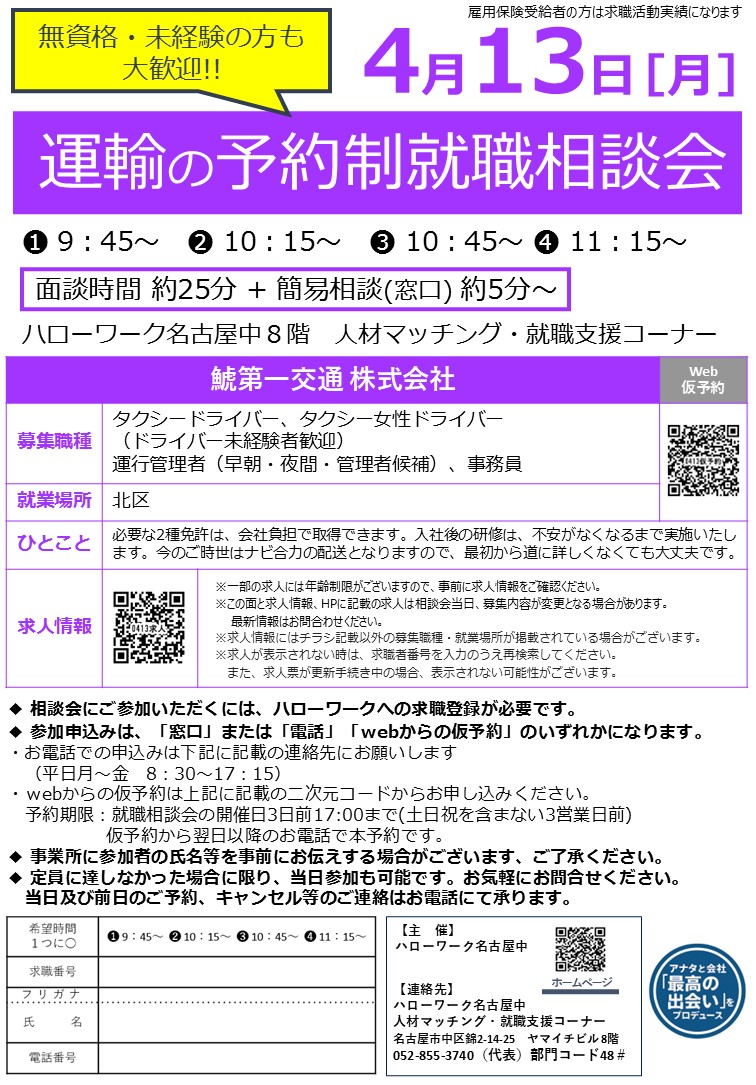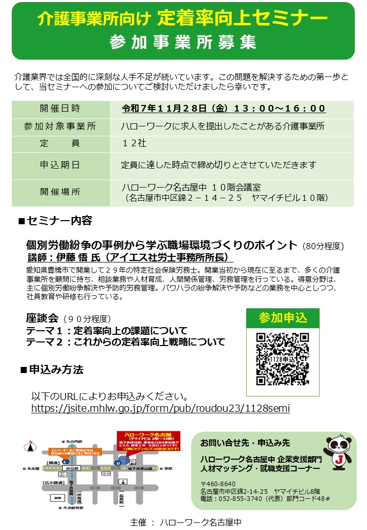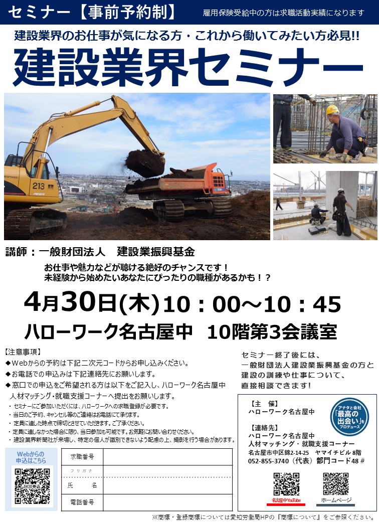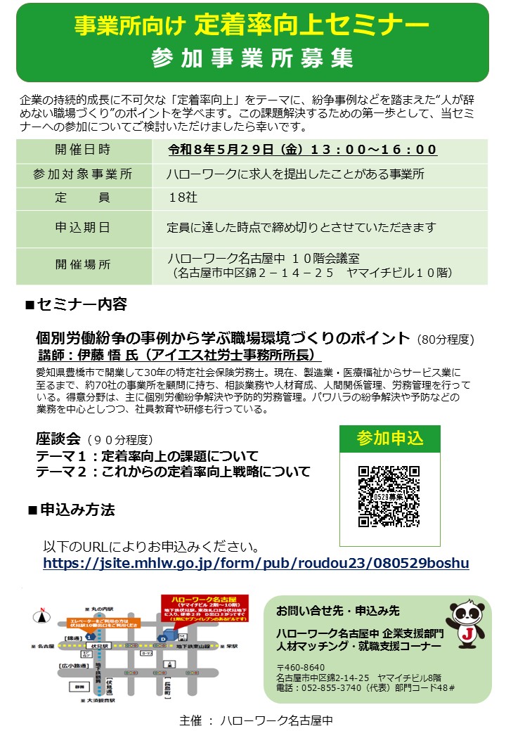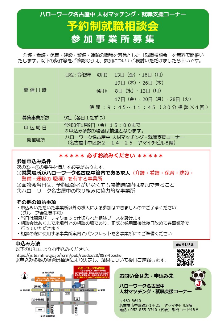 ハローワーク名古屋中 〒460-8640 名古屋市中区錦2-14-25 ヤマイチビル TEL:052-855-3740