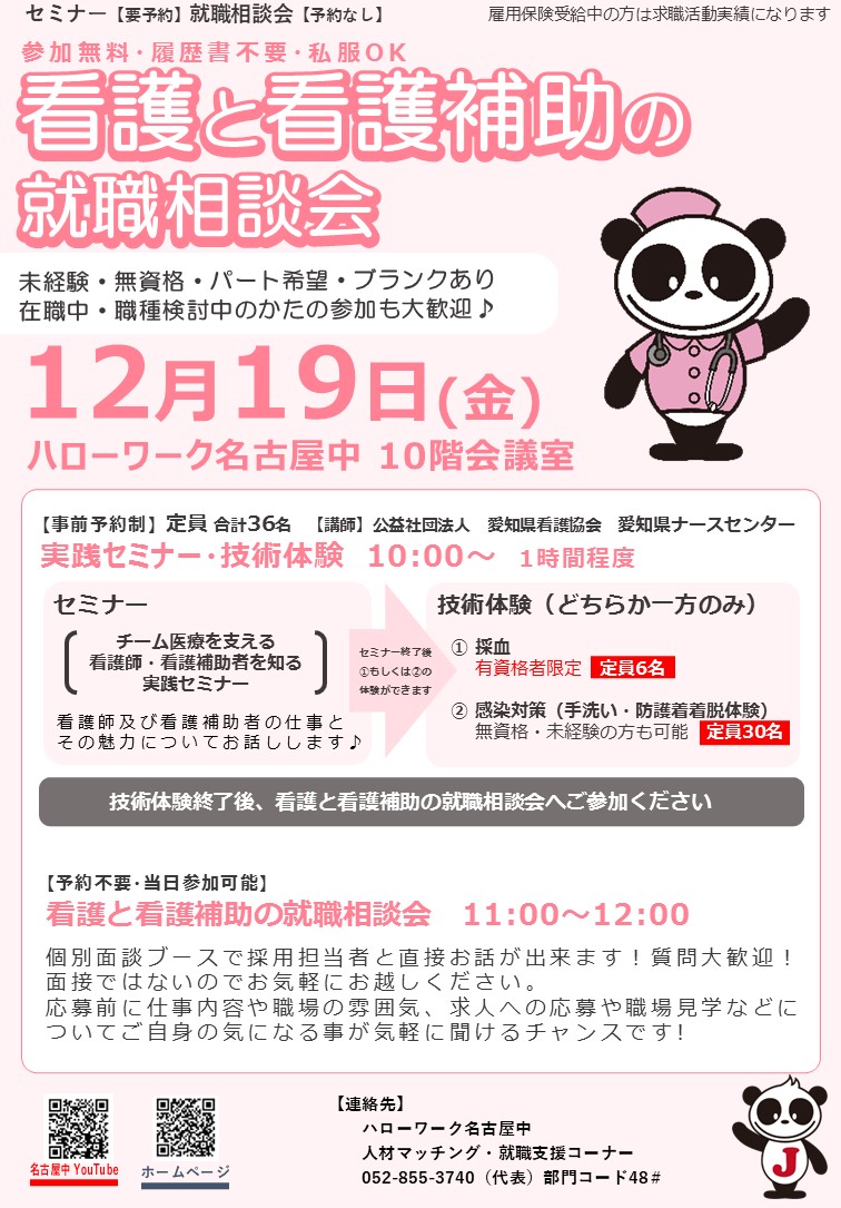 12月17日(水) 予約制就職相談会 【介護・看護】
