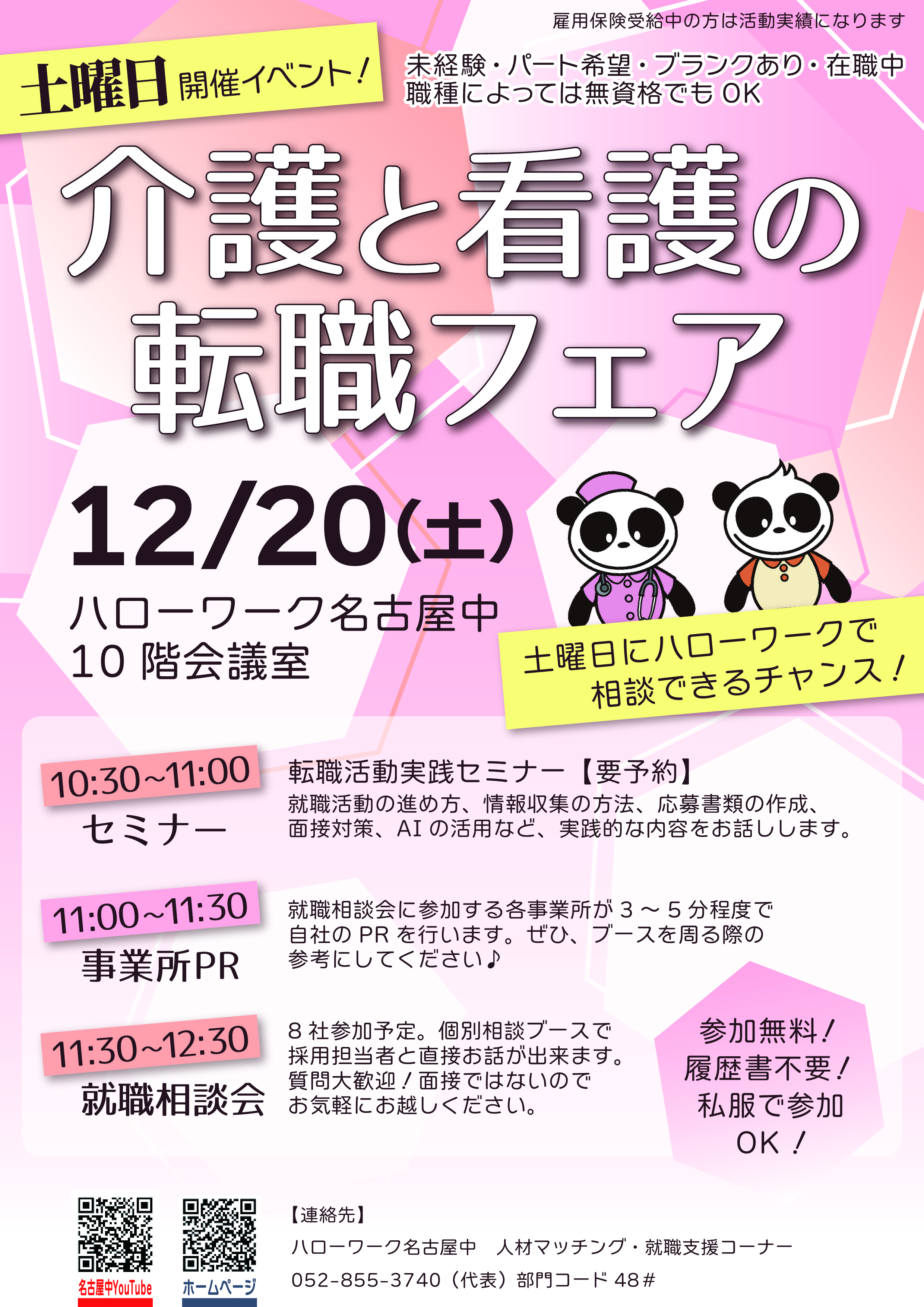 12月5日(金) 予約制就職相談会 【介護・看護】