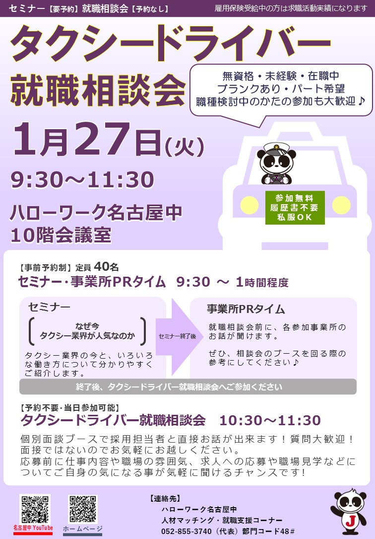 1月27日(火) タクシードライバー就職相談会
