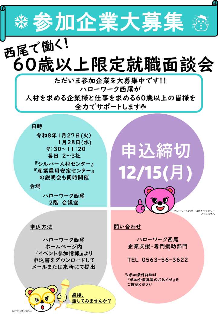 『西尾で働く!60歳以上限定就職面談会』参加企業募集