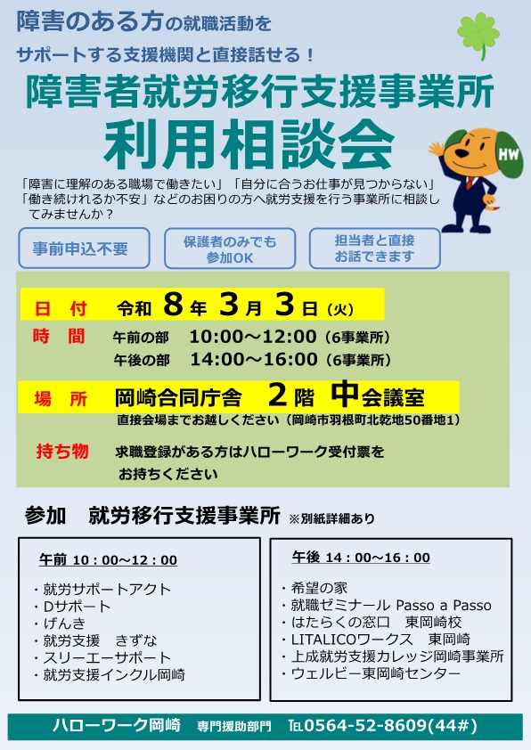 障害のある方の就職活動をサポートする支援事業所に直接お話がきけます。