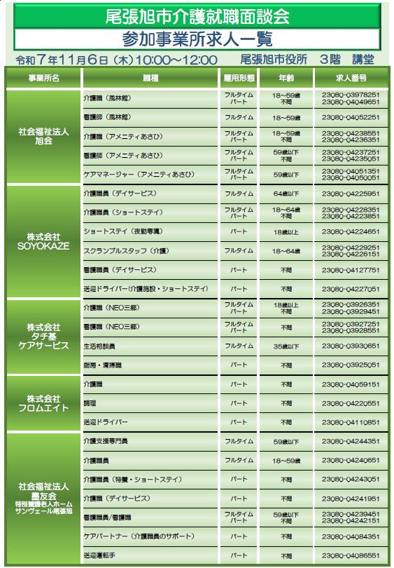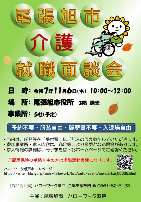 令和7年11月6日(木)に『尾張旭市介護就職面談会』を開催します