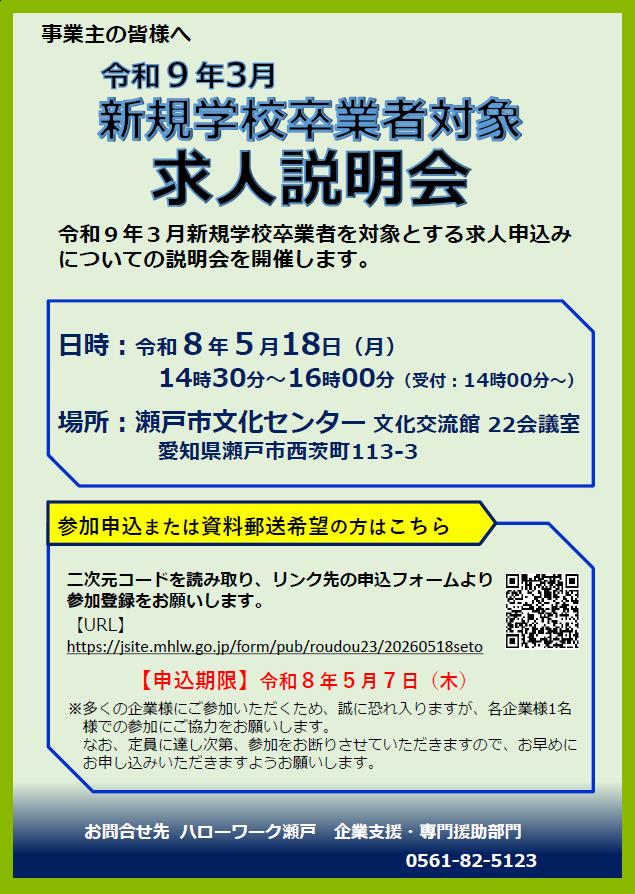 令和9年3月新規学校卒業者を対象とする求人申込みについての説明会を開催します。