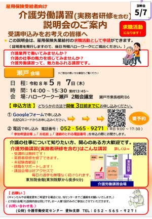 公益財団法人介護労働安定センター(名古屋市中村区)による、介護労働講習の説明会です。