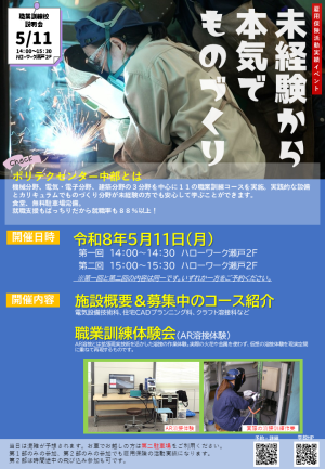 ポリテクセンター中部(小牧市下末)によるものづくり系訓練コース説明会です。