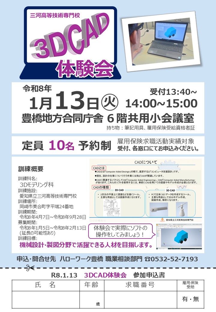 - 令和8年1月13日(火) 午後14時00分~午後15時00分