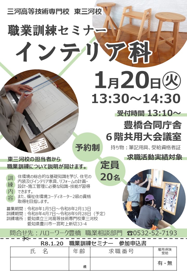 三河高等技術専門校 東三河校による職業訓練セミナーを開催します。