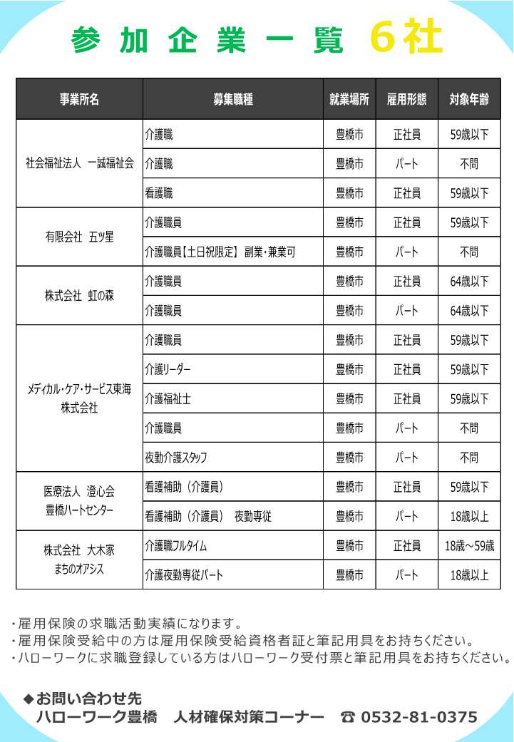 介護事業を行っている企業6社が参加する企業説明会を開催します。 ~パンフレット~