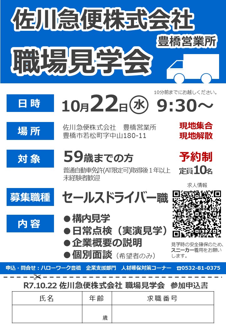 - 佐川急便 株式会社 豊橋営業所 豊橋市若松町字中山180-11(現地集合・予約制)