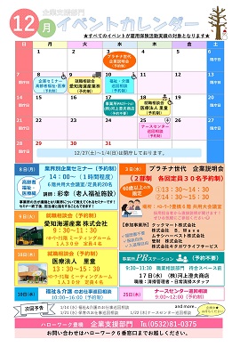 ハローワーク豊橋人材確保対策コーナー12月イベントカレンダー ⑥番窓口にてお申込みください。