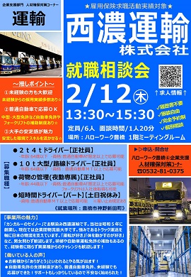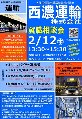 ハローワーク豊橋就職相談会(西濃運輸株式会社)を開催します。