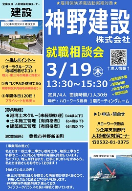 ハローワーク豊橋就職相談会(神野建設株式会社)を開催します。