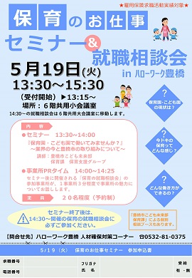 ハローワーク豊橋にて保育のセミナー・就職相談会を開催します。