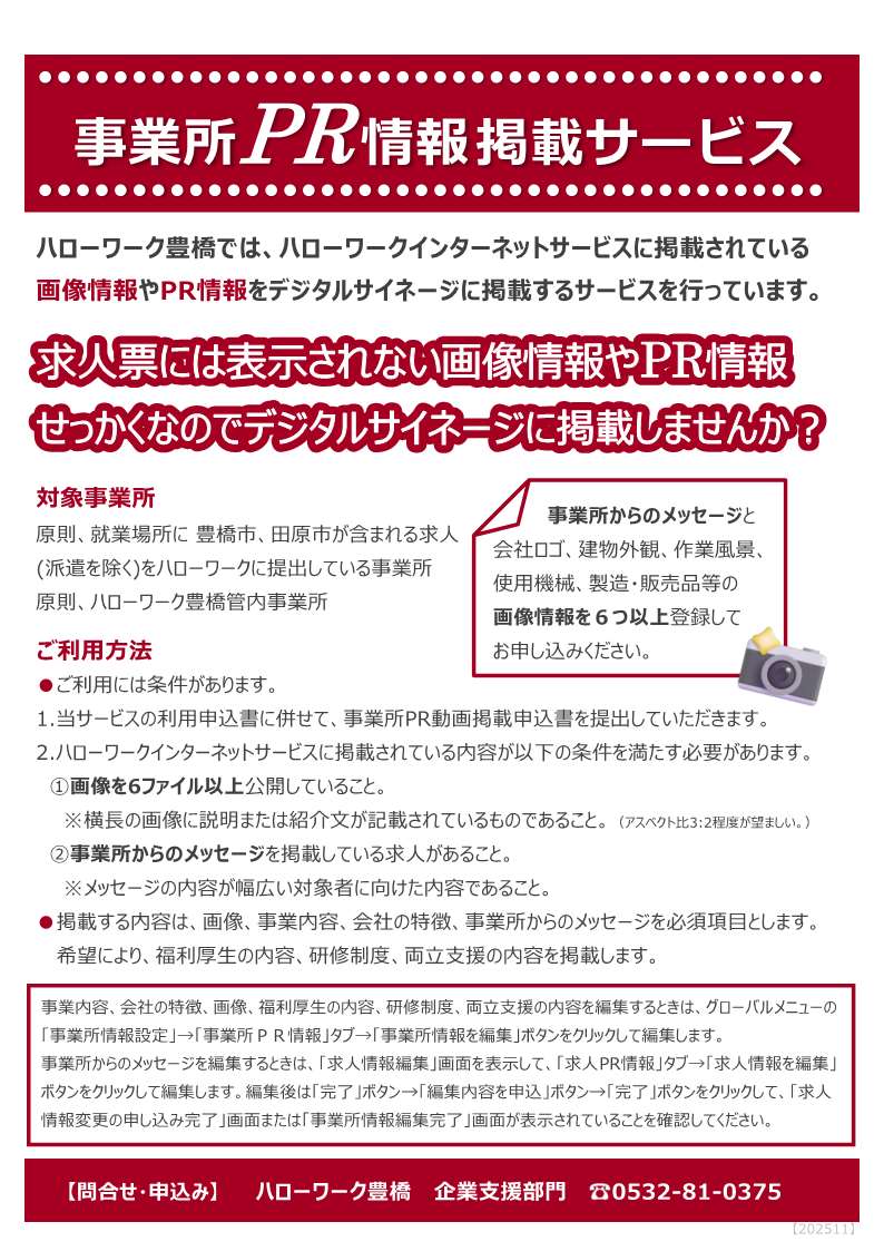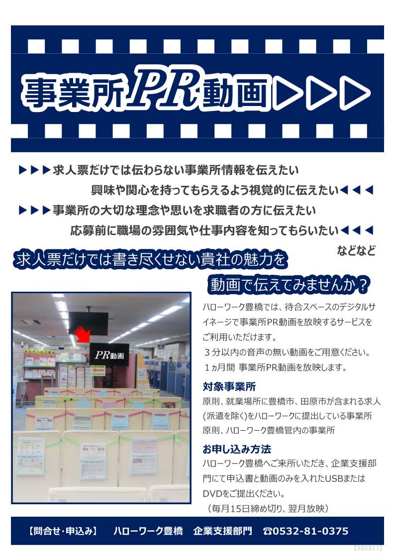 ハローワーク豊橋では、待合スペースのデジタルサイネージで事業所 PR 動画を放映するサービス をご利用いただけます。