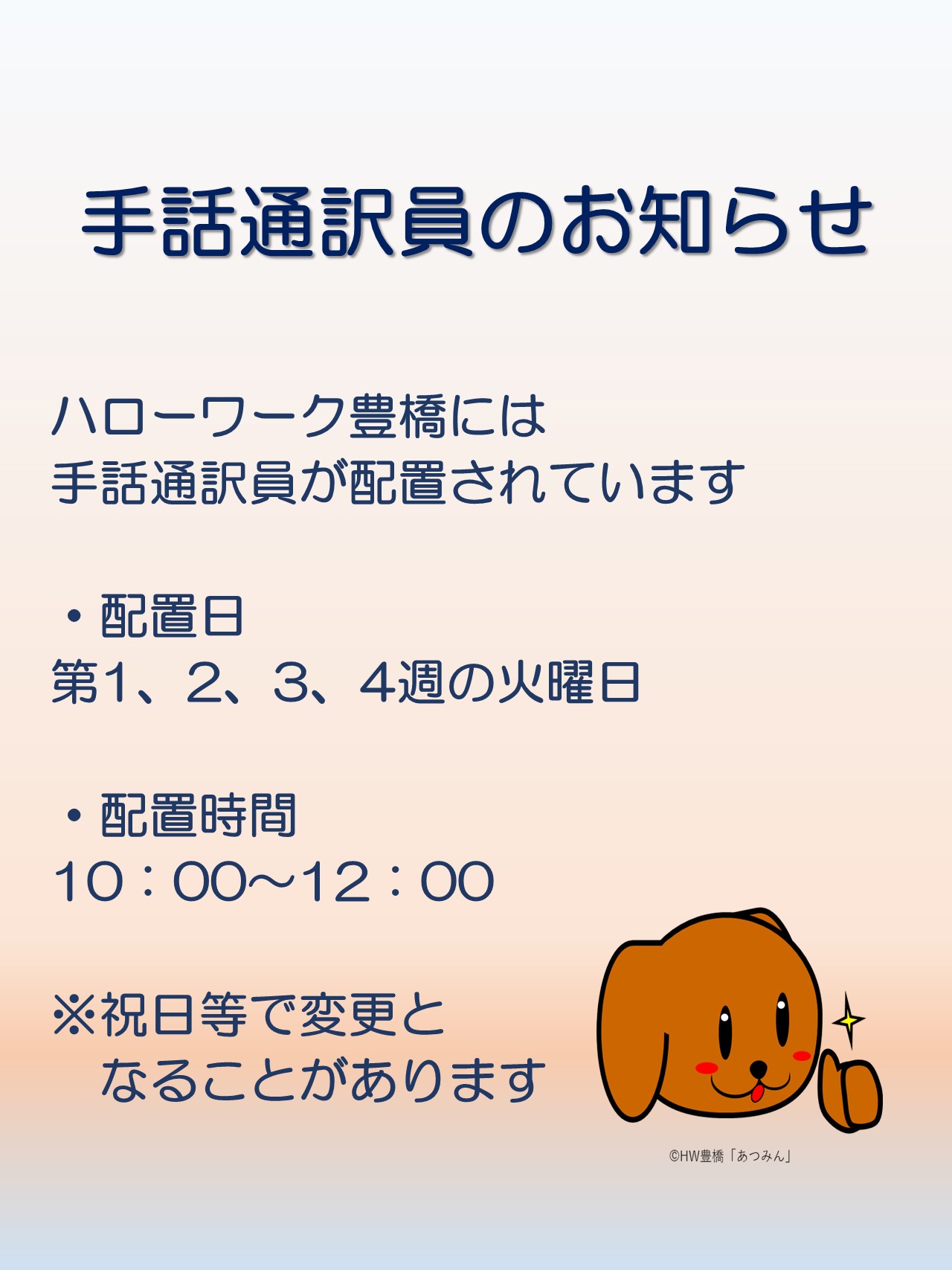 ハローワーク豊橋には、手話通訳員が配置されています。