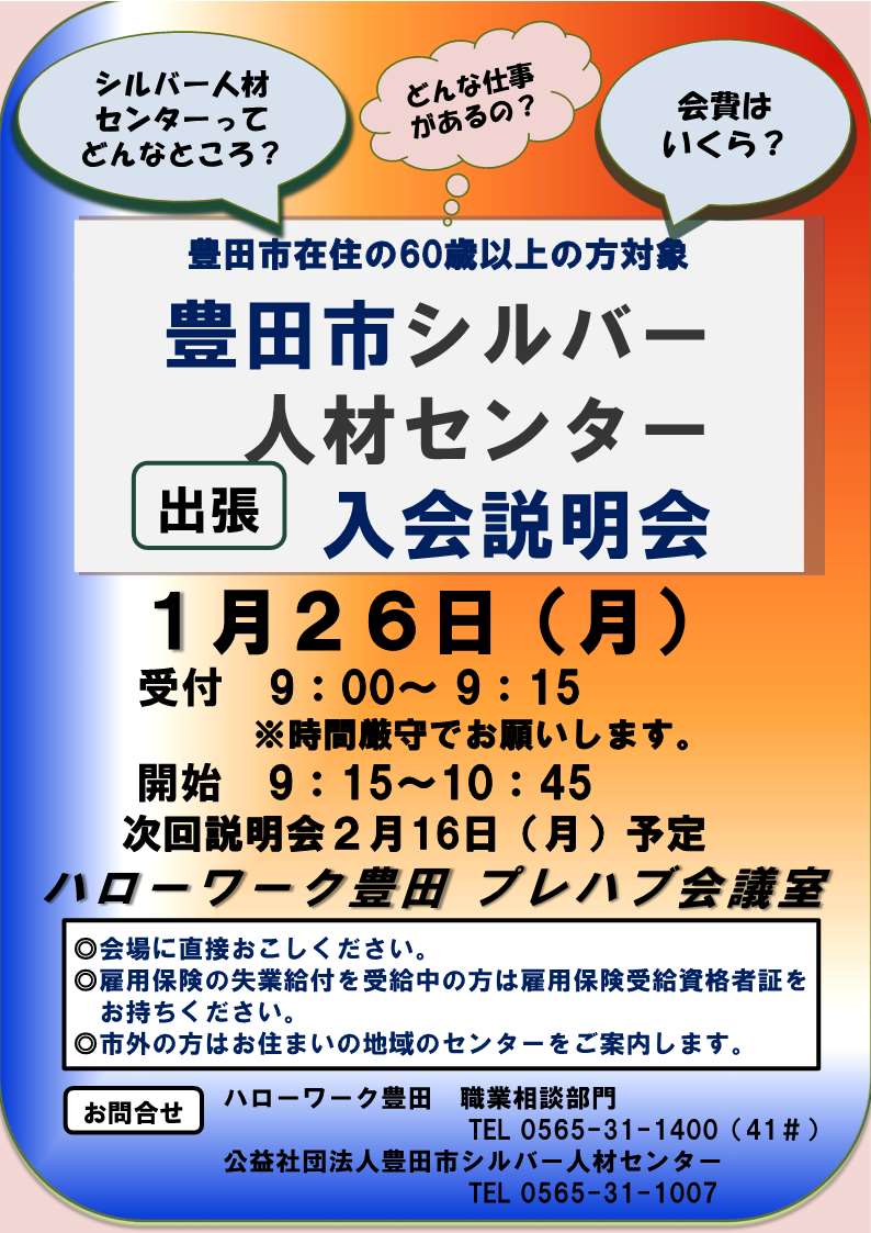 5. 【1月26日開催】豊田市シルバー人材センター入会説明会のご案内