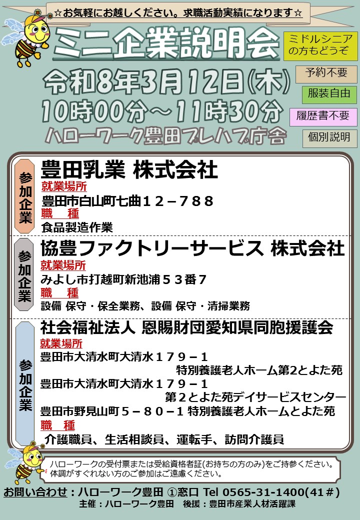 【3月12日開催】ミニ企業説明会のご案内