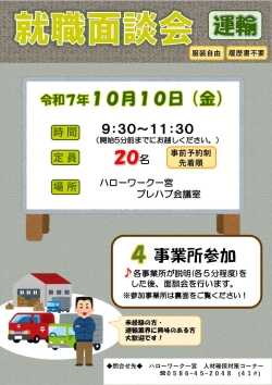 運輸の就職面談会のお知らせ(R7.10.10)