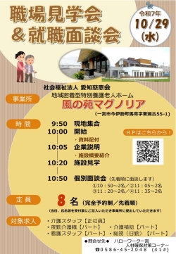 職場見学会&就職面談会のお知らせ (R7.10.29)