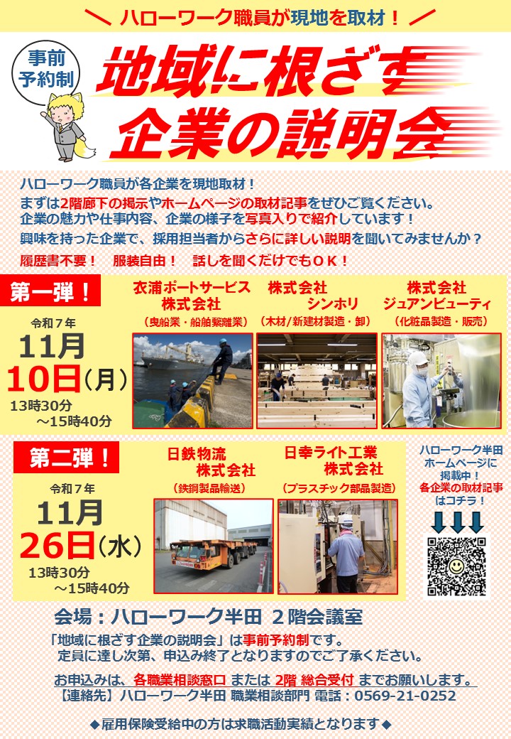 詳細は半田所ホームページの「地域の会社を知ろう!」に掲載中で、企業の魅力や仕事内容を写真入りで紹介しています。