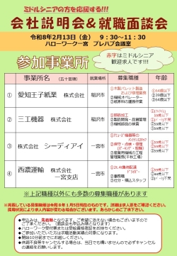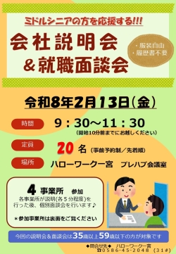 【ミドルシニアの方を応援する「会社説明会&就職面談会」のご案内】(R8.2.13)