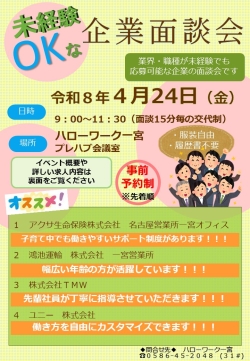 「未経験OKな企業面談会」を開催します。