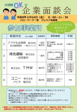 ☆参加事業所:・アクサ生命保険 株式会社 名古屋営業所一宮オフィス