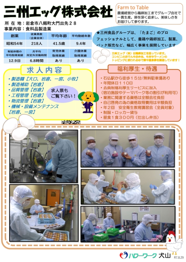 今回の参加企業は、【三州エッグ株式会社 岩倉工場】です。