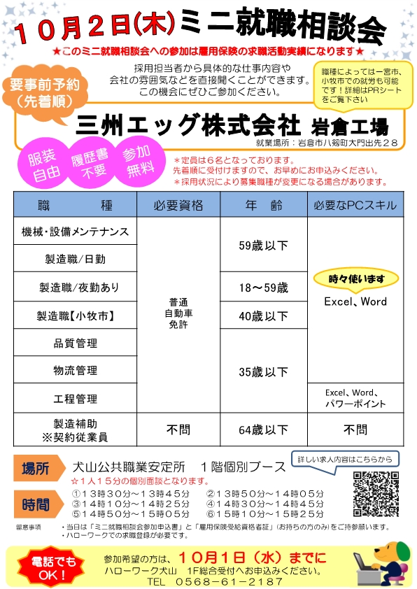 参加申込書をご記入の上、ハローワーク1階総合受付へお持ちいただくか、企業支援部門(TEL:0568-61-2187)までご連絡ください。