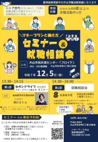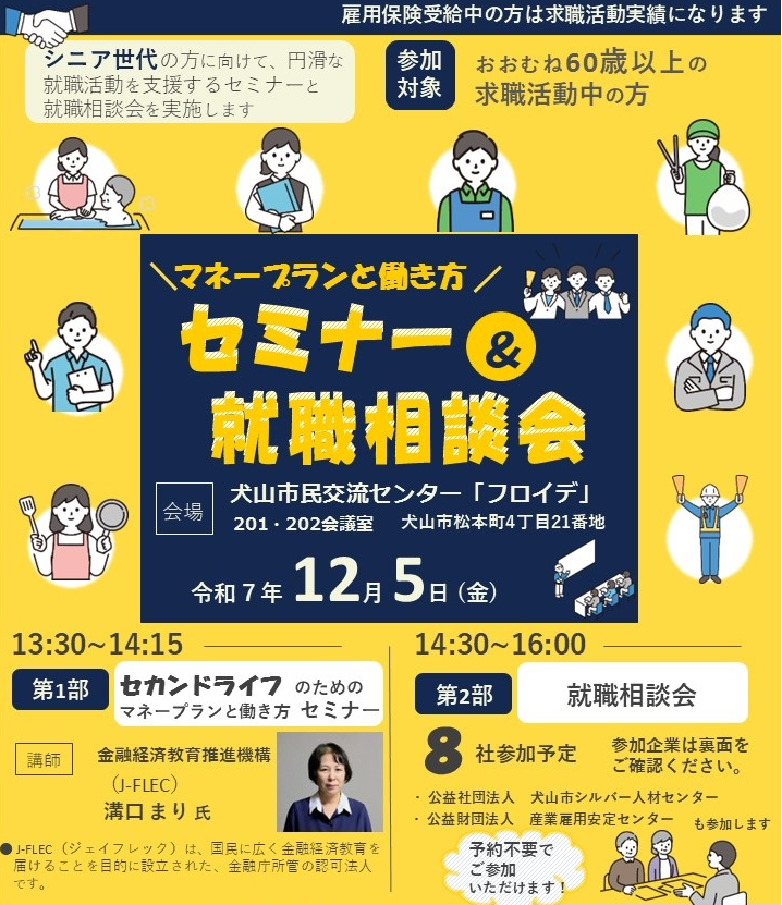 ハローワーク犬山主催による「マネープランと働き方セミナー&就職相談会」を、下記のとおり開催します。