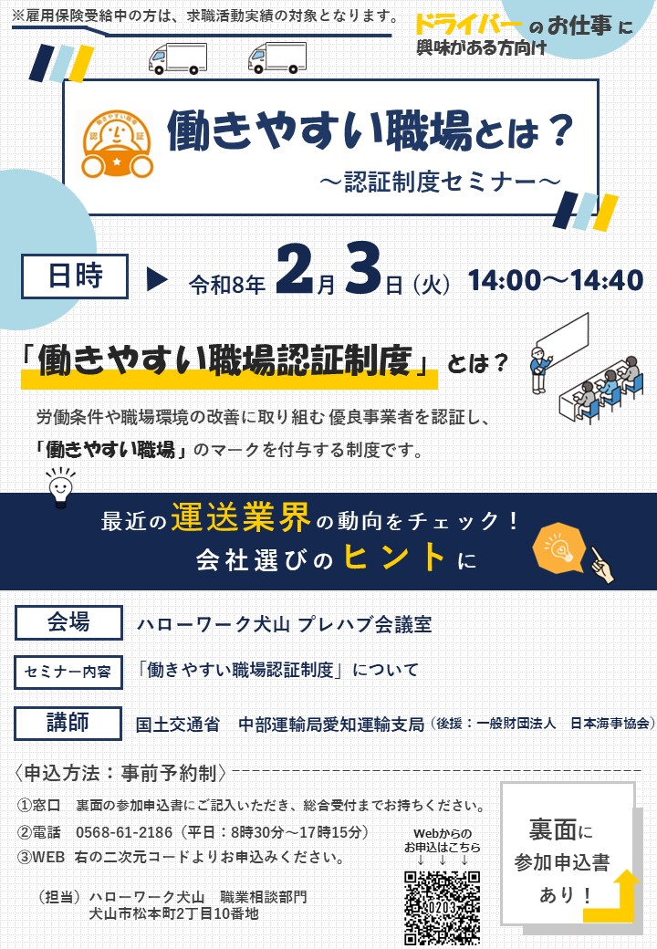 令和8年2月3日(火)働きやすい職場とは?~認証制度セミナー~