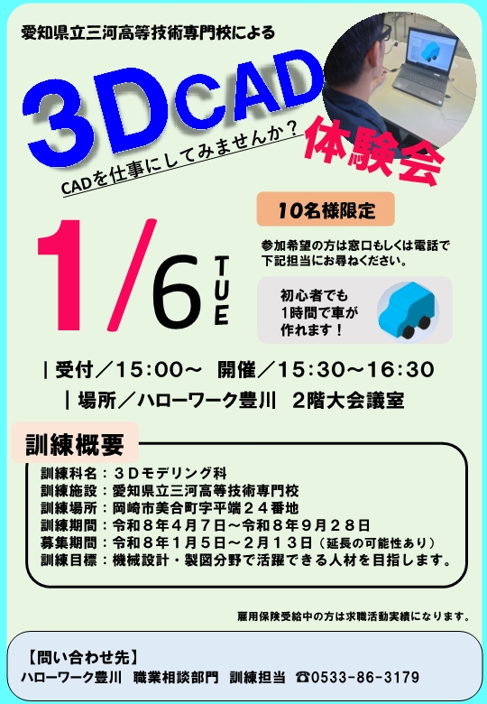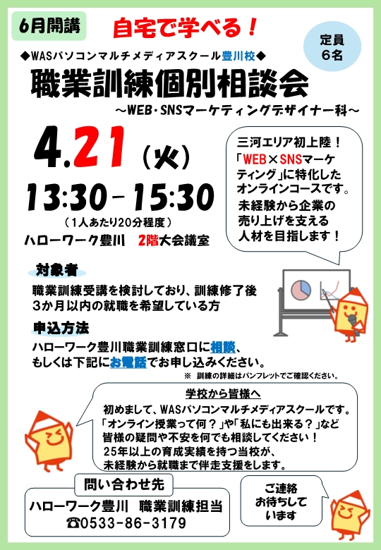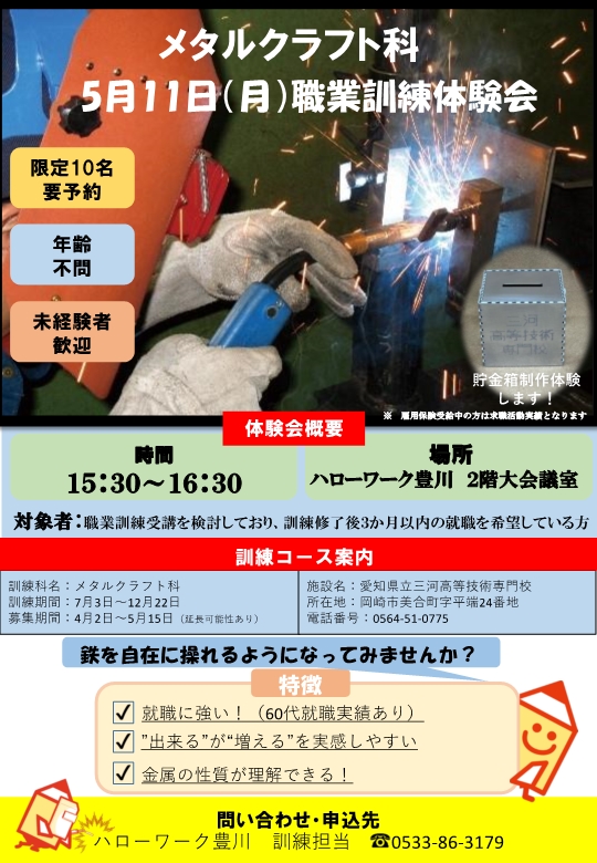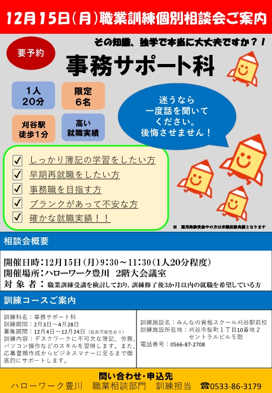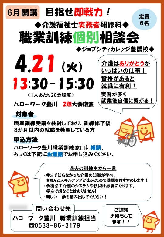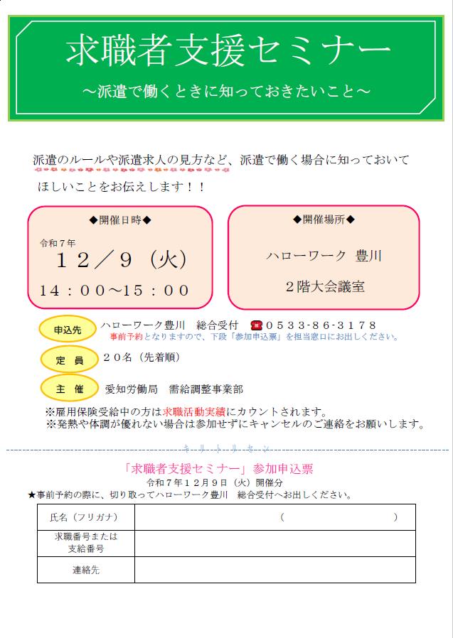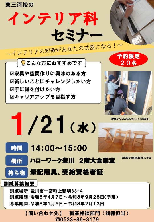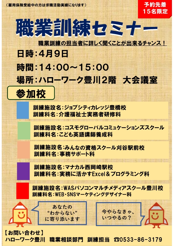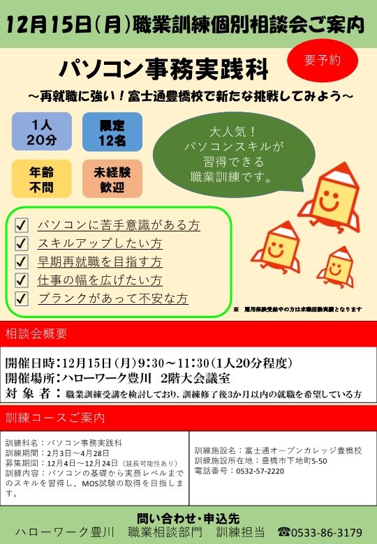 予約連絡先:ハローワーク豊川職業相談部門 ☎0533-86-3179